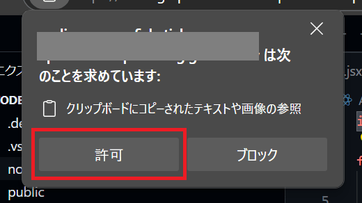 ターミナルに貼り付けを行う際、ブラウザに権限を与える必要があるので、許可をクリックしてください。