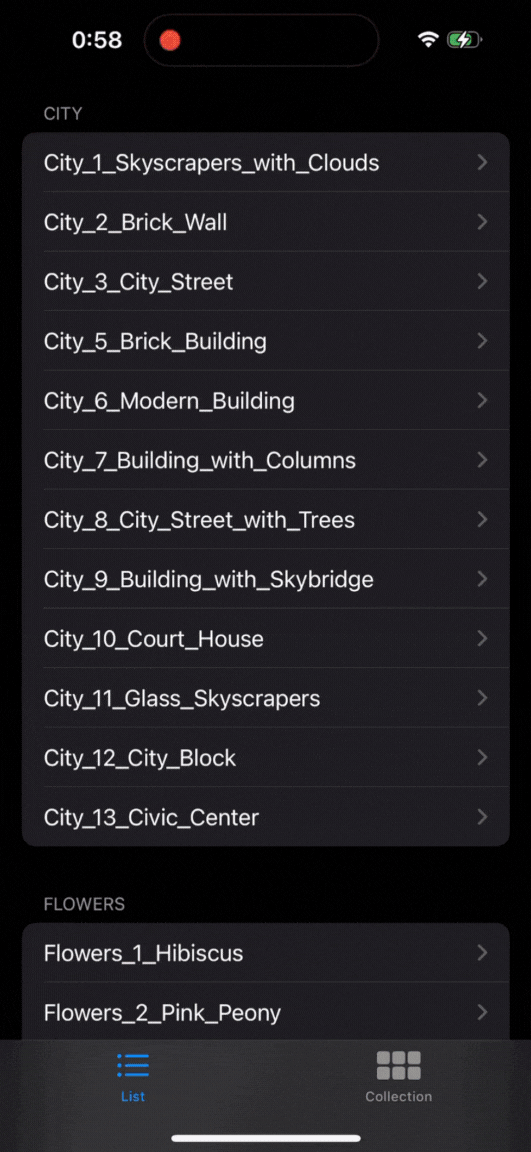 Listの状態のTabBarを切り替えるためにCollectionのTabBarを押します。しかし、下記の動画のようにボタンを押してから約5秒しないとCollectionの画面に切り替わらないというハングが起こっています。