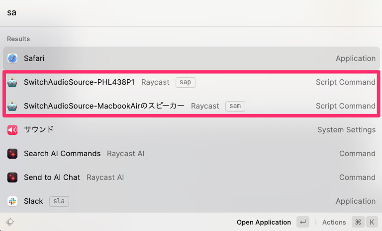 Raycastのコマンドでサウンドの出力先を一発で切り替える