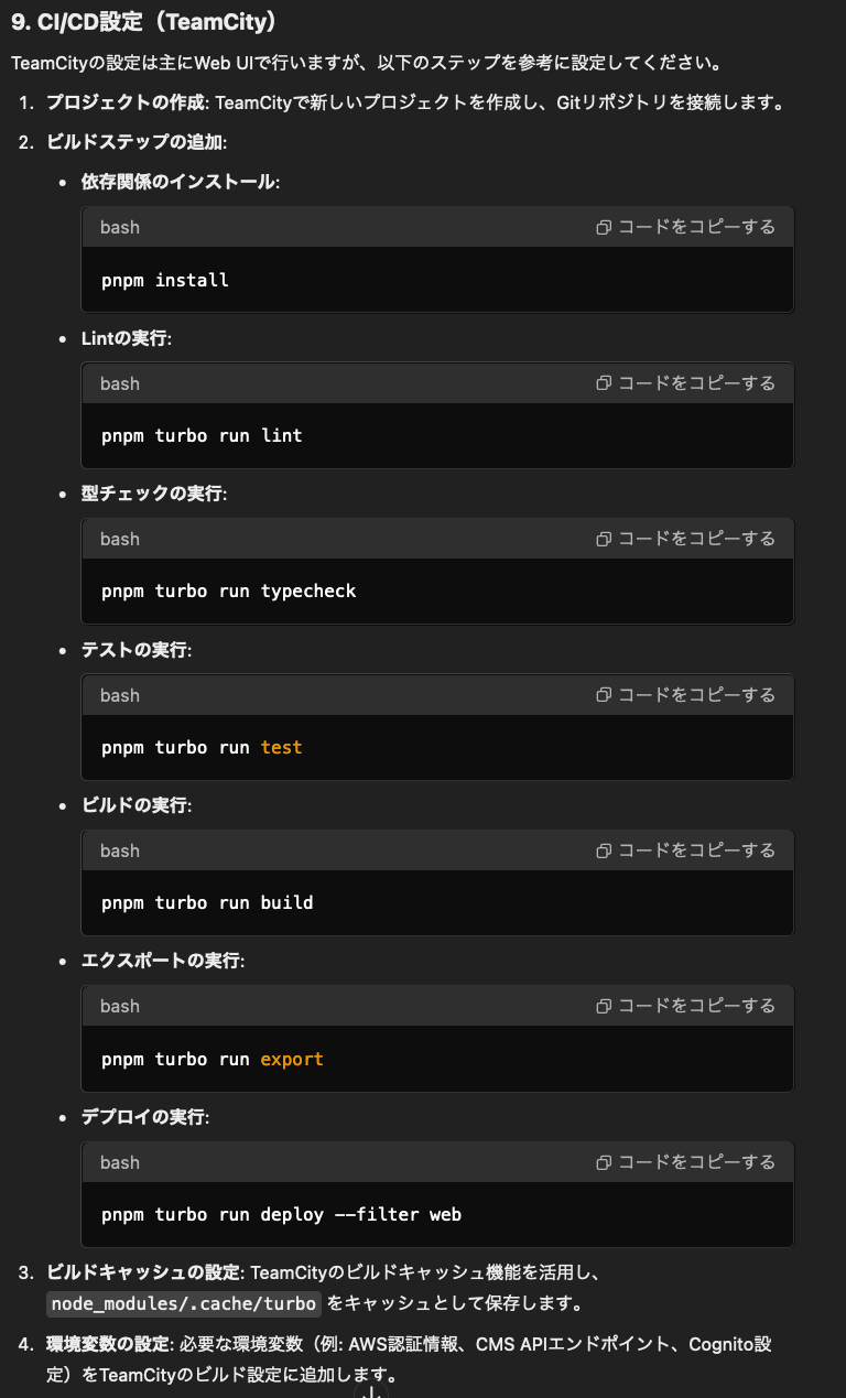 turbo.json に定義されたタスクを活用して、ビルド、テスト、エクスポート、デプロイなどを効率的に実行します。