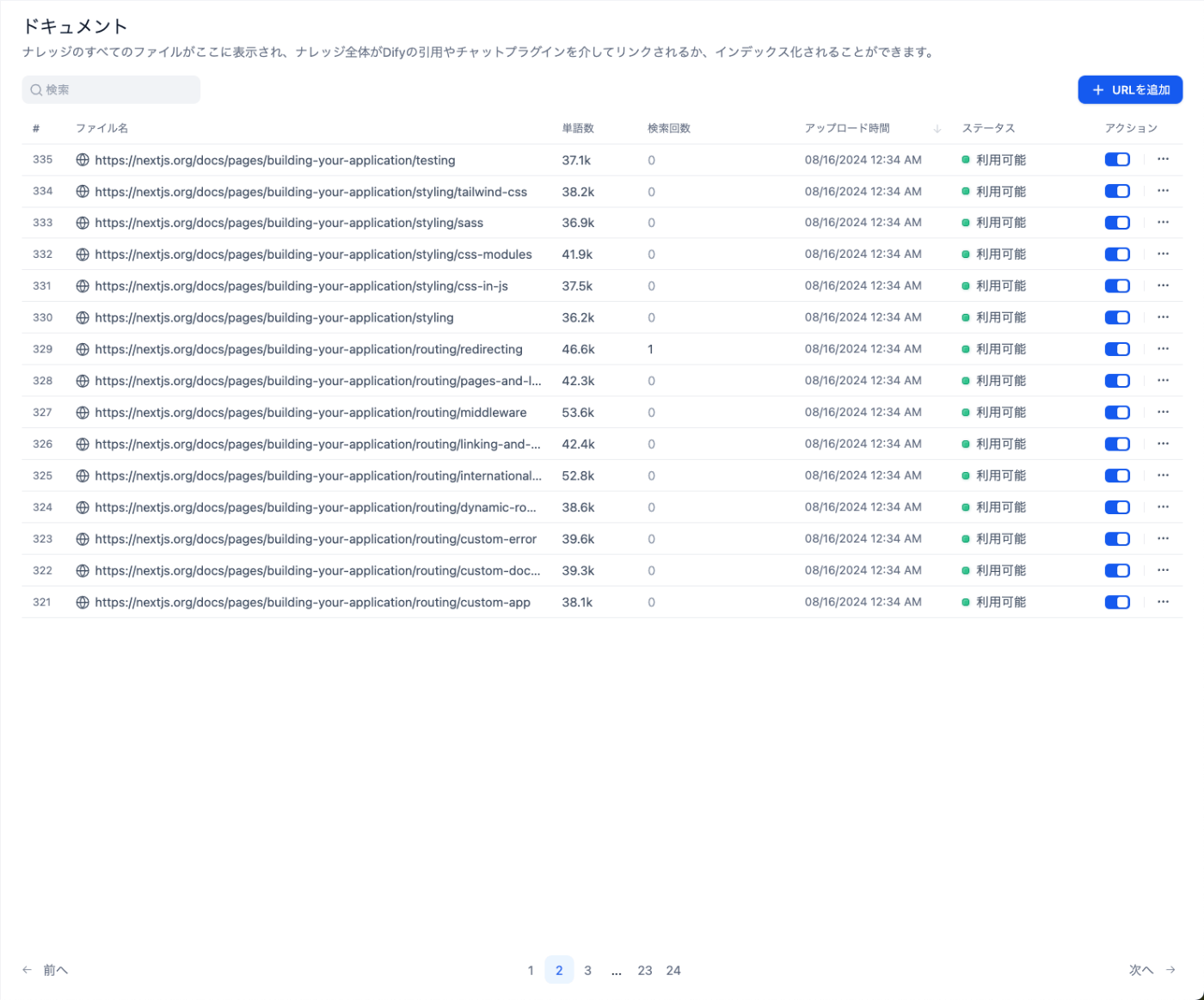 DifyではRAGを構築するのにWebサイトから同期という機能があり、これを使います