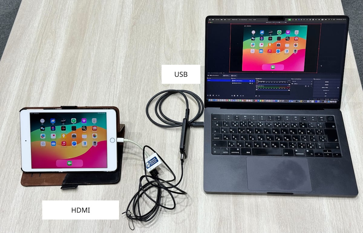 - iPad で出力されるHDMIをUSBに変換するHDMIキャプチャー