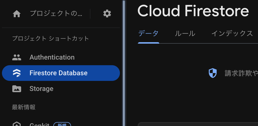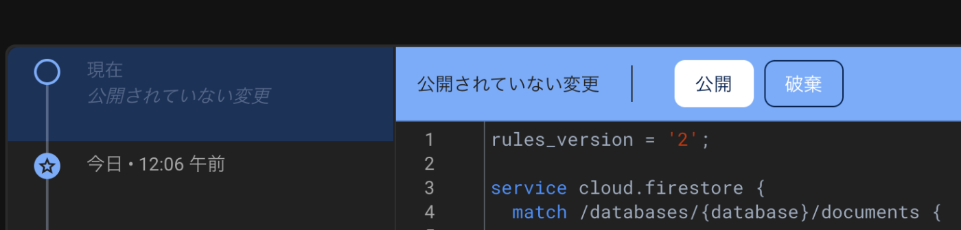 権限まわりはFirestoreコンソールを見にいきます。