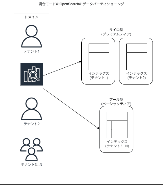 OpenSearchでは下図のような構造でテナントデータを保存及び管理することになります。
