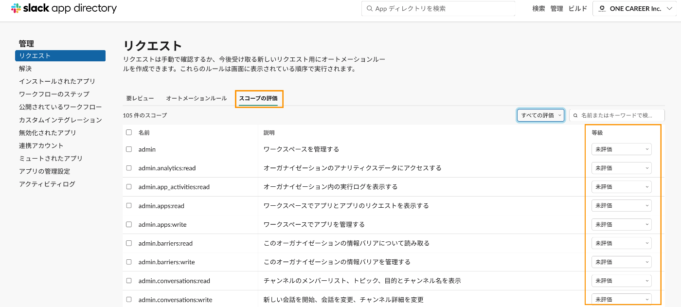 今は大多数のIncomming-webhookのみのスコープは自動承認にして、それ以外のものはヤバめなので慎重に判断できるようになりました。