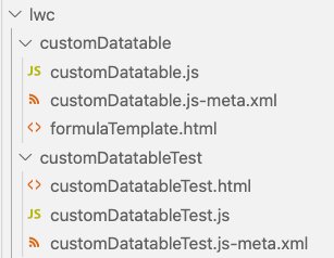 そのためには、カスタムタイプとしてformulaを追加します。カスタムタイプを追加するには、lightning-datatable を継承したカスタム要素クラスを作成します。