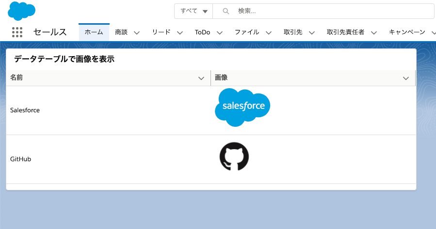 今回は Lightning Web Components の lightning-datatable でカスタムタイプを追加する方法です。カスタムタイプを追加すると lightning-datatable では提供されていないデータも好きな形式でテーブルのセルに表示できるようになります。例えば、こんな風に画像を表示させたりも出来るようになるので、datatable をスクラッチで自作しなければいけない理由が一つ減りますね。