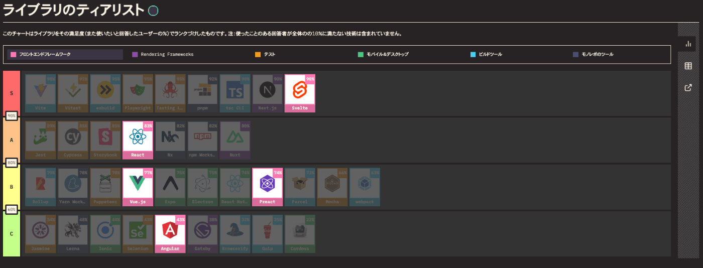 2023年11月現在のフロントエンドのトレンド調査のため、State of JavaScript の情報を参考に調査を行った。