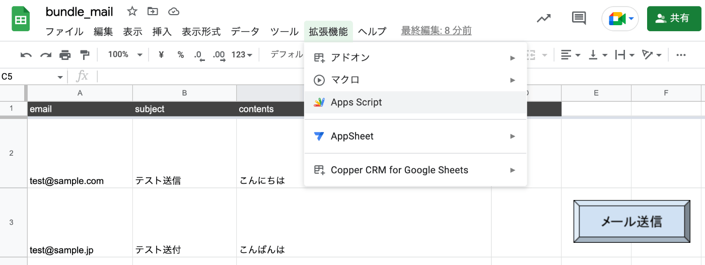 メルマガツールを使うまでもない規模のメール一括送信をしたいときに使えそうな GoogleAppScript を作りました。