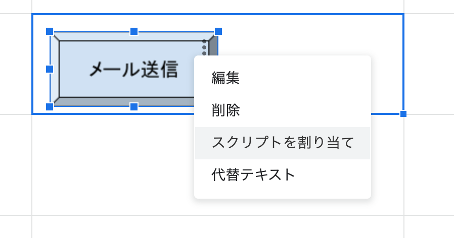 ボタンが作成できたら、ボタン選択時右上に表示される 3 連点をクリックして「スクリプトを割り当て」を選択します。