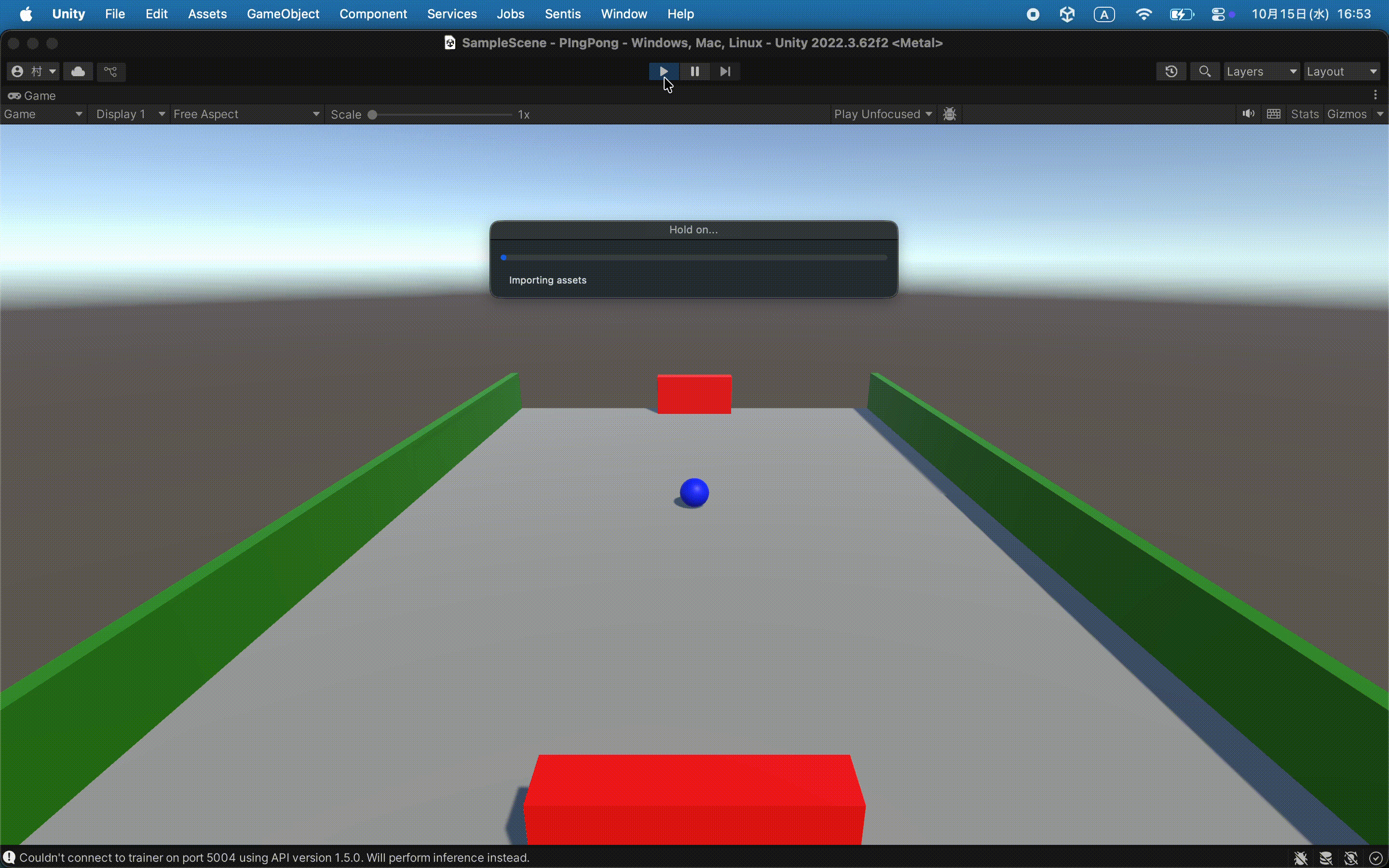 学習した結果を片方のPingPongAgentに適応させて遊んでみました.奥がAIです.