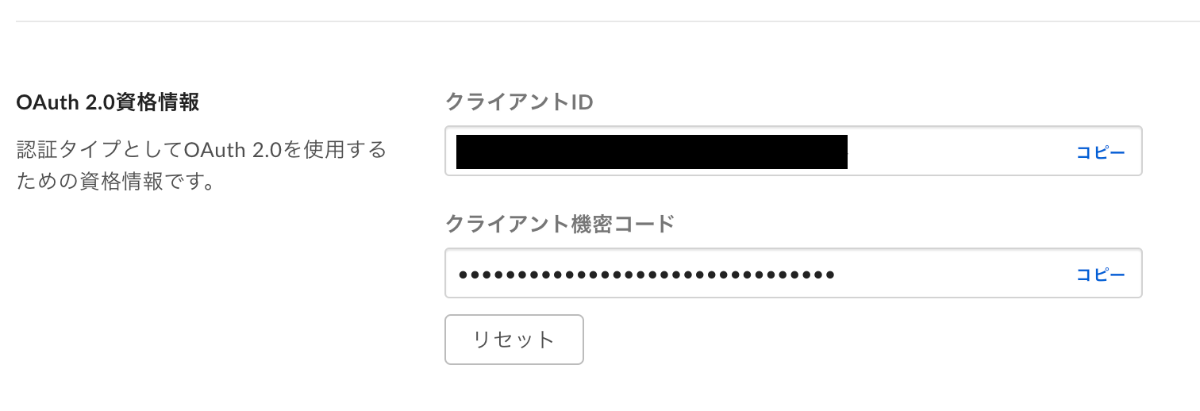 先ほど確認したクライアントIDとクライアント機密コードを利用して、以下のサンプルにならって