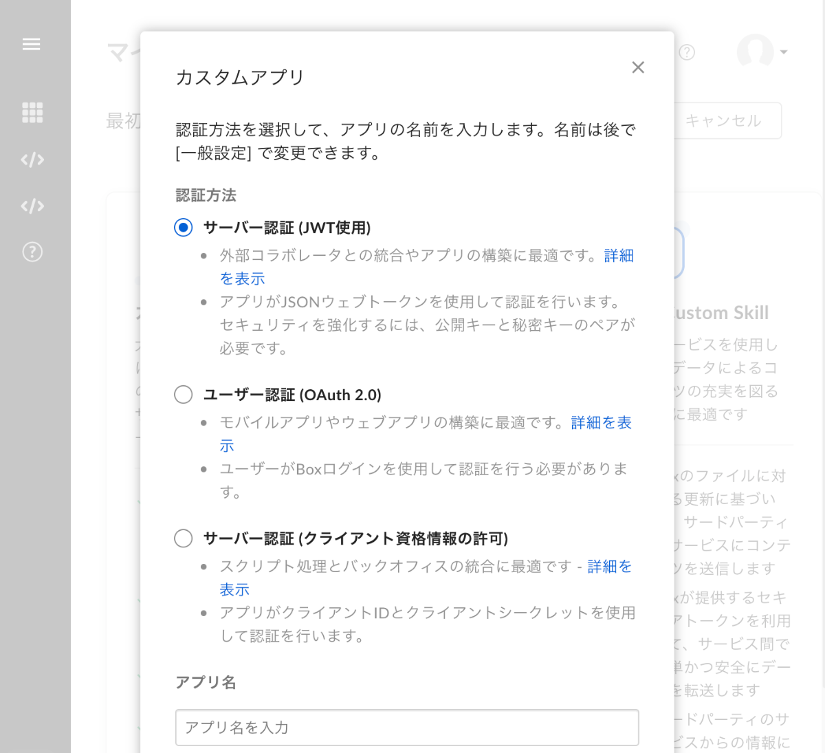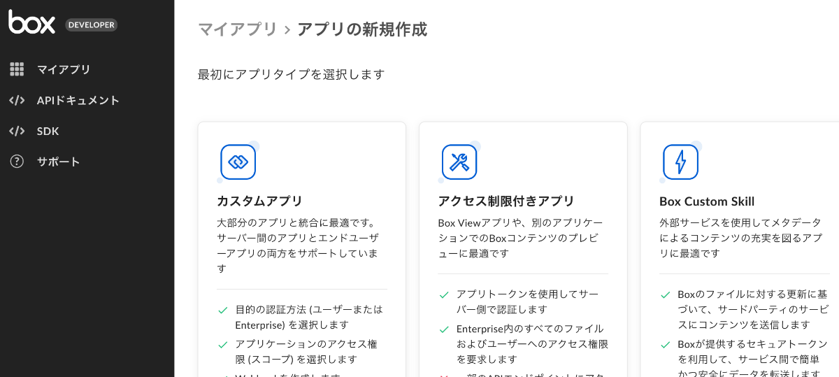 これまで、boxのクライアントアプリの認証は以下の2つが提供されていました。