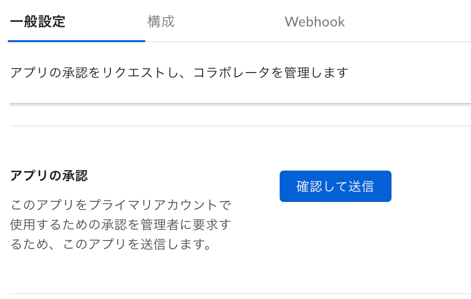 次にこのアプリの承認が必要となります。一般設定 - アプリの承認 からアプリの承認を行います。
