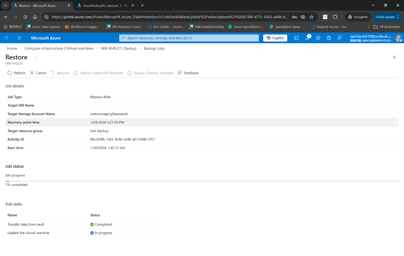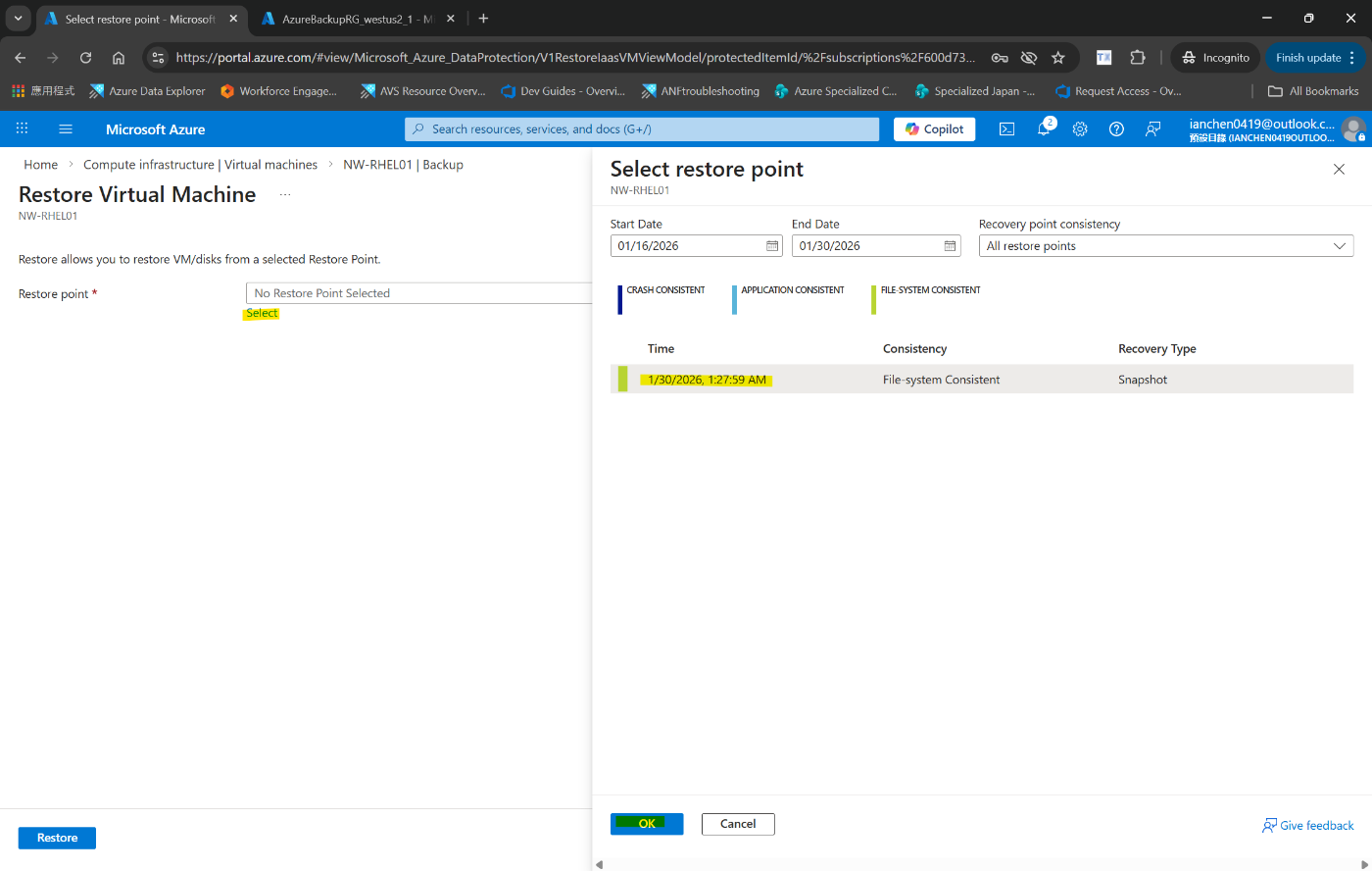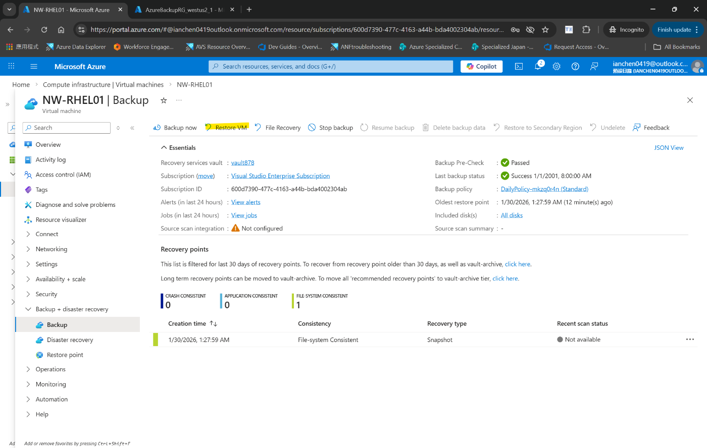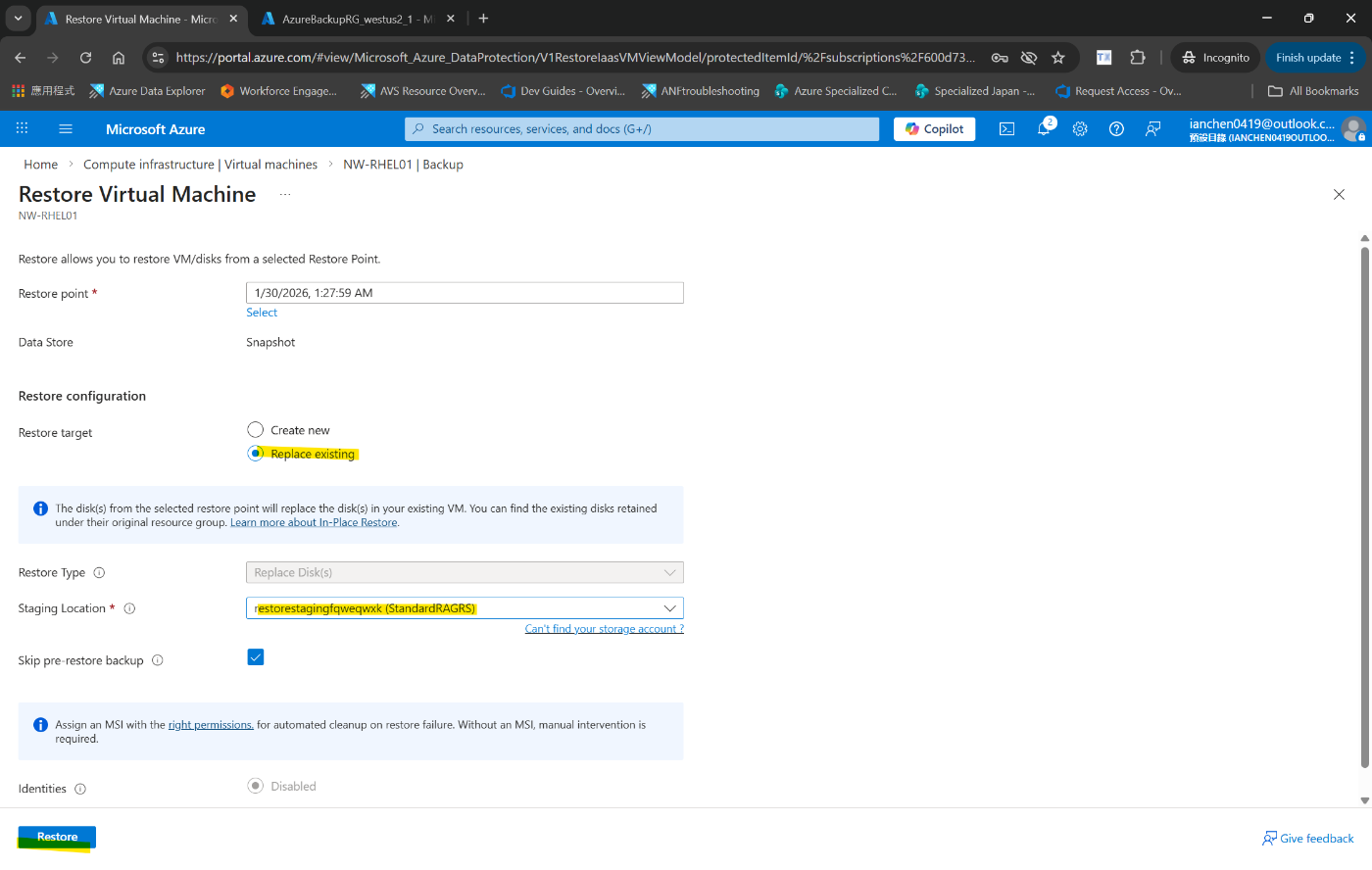 Azure portal で仮想マシンを復元する