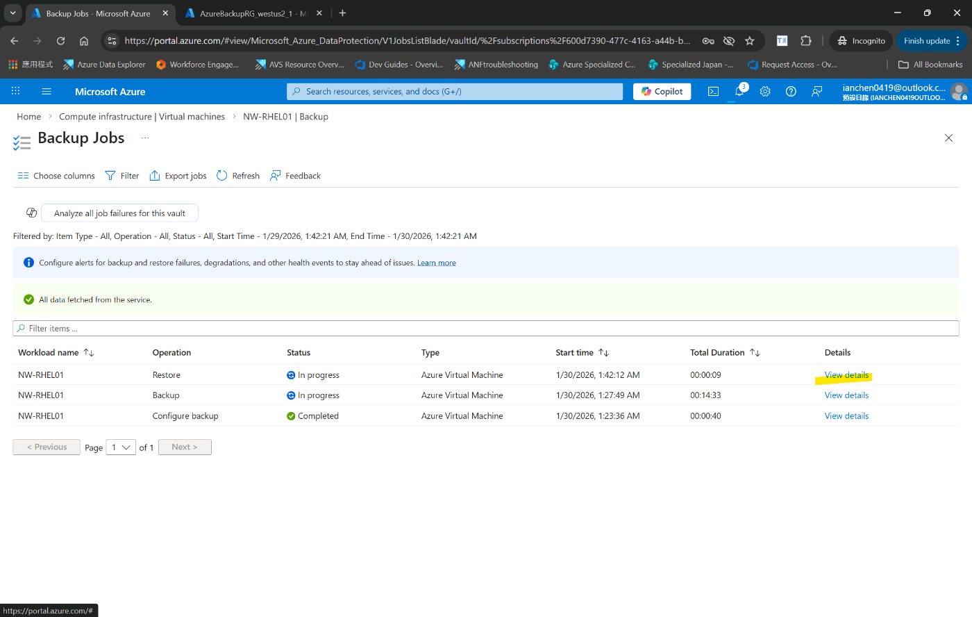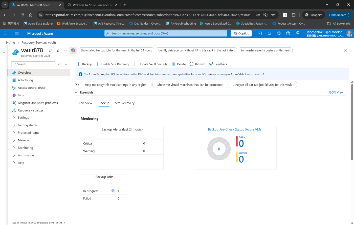 Recovery Services コンテナー内のバックアップの状態を表示する