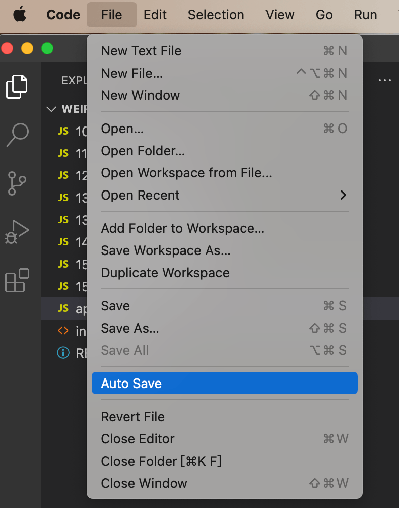 👻VSCodeのオートセーブ2022/07/08に公開VS CodetechMacを長い年月を使うと、キーボードの「S」や「Command」のキーがよく壊れます その原因の一つは、ファイルセーブのcmd + Sを、一日中に何千回使ってしまうことです こんな悩みを抱いている方は、ぜひオートセーブ機能を使ってみましょう VSCodeは、Xcodeのようにキーボードを打たずに自動的に保存することがあります 「File」→「Auto Save」をクリックするだけでこの機能をONにすることができます そうするとこれから一切保存のショートカットを打つことがなくなります Discussion