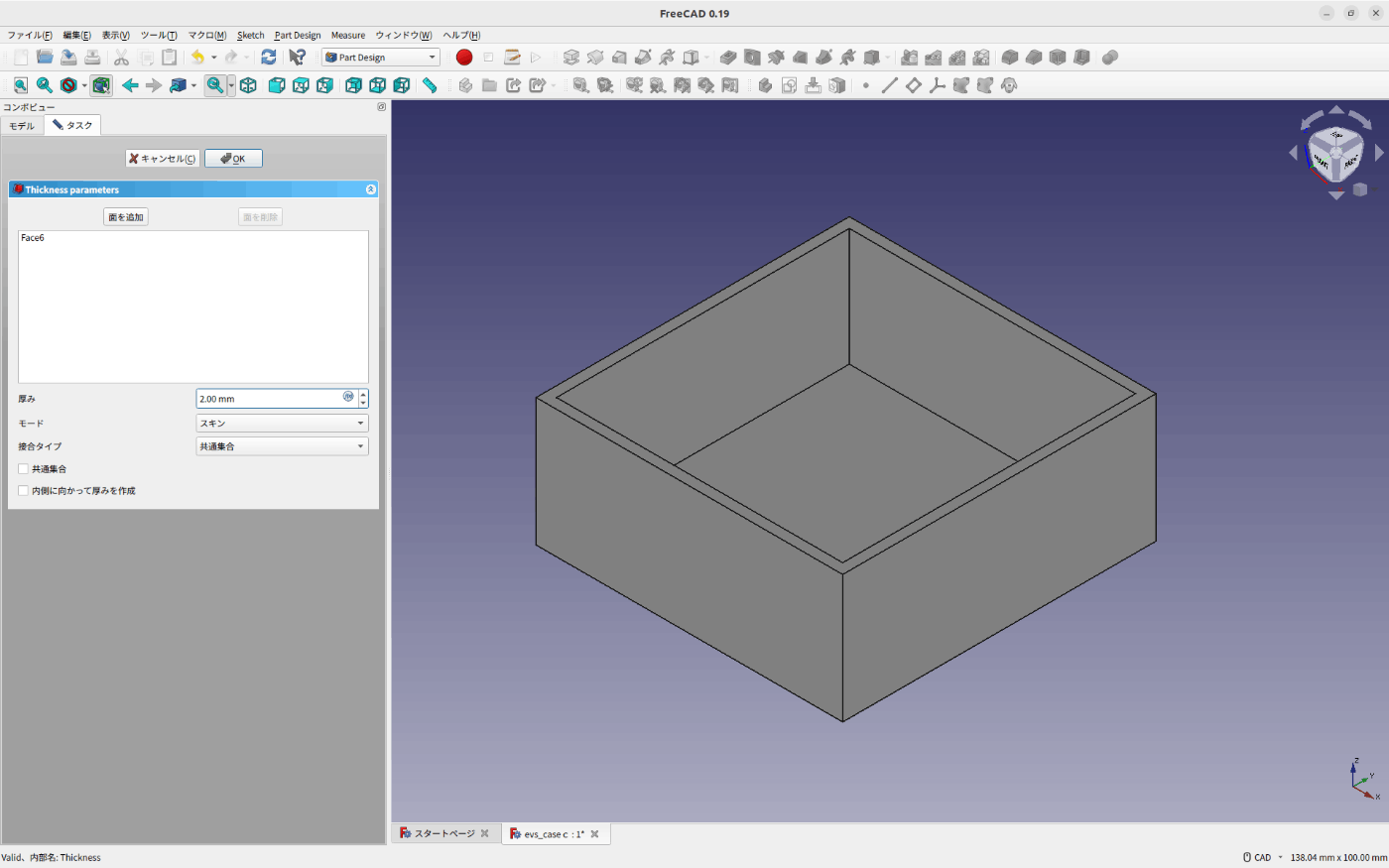 今回作成するものはケースなので、この直方体を箱になるようにくり抜く必要があります。