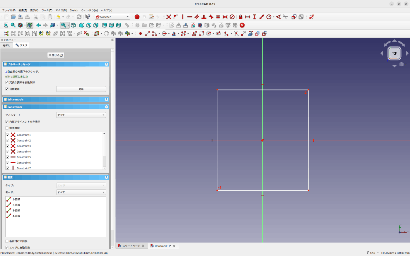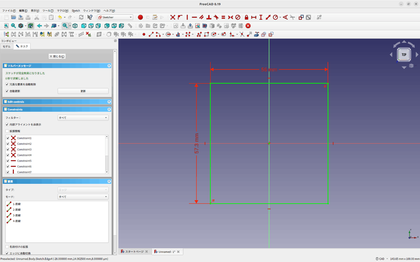 図った寸法をもとにスケッチを作成します。まずはベースからです。