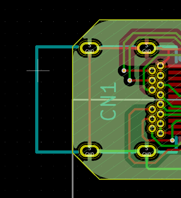 アートワークの最後に基板全体を塗りつぶしゾーンで囲い、GNDベタを作る事が多いですが、KiCad6の時には、デフォルトでEdge.Cutsの内側になってくれたので、製造に問題ありませんでした。