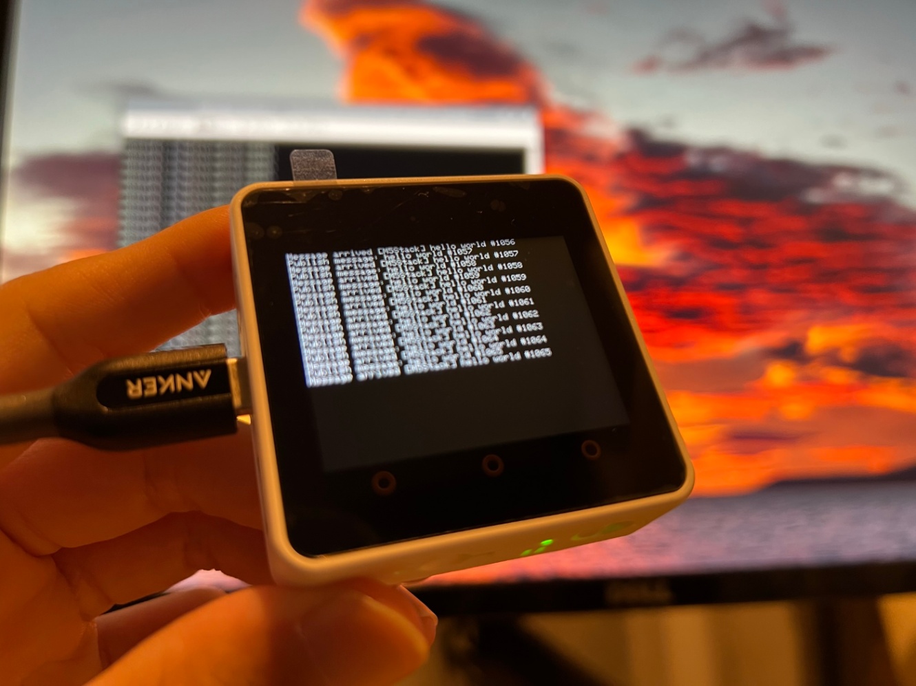 $ mosquitto_pub -t M5Stack -h localhost -m "We are Perfume"