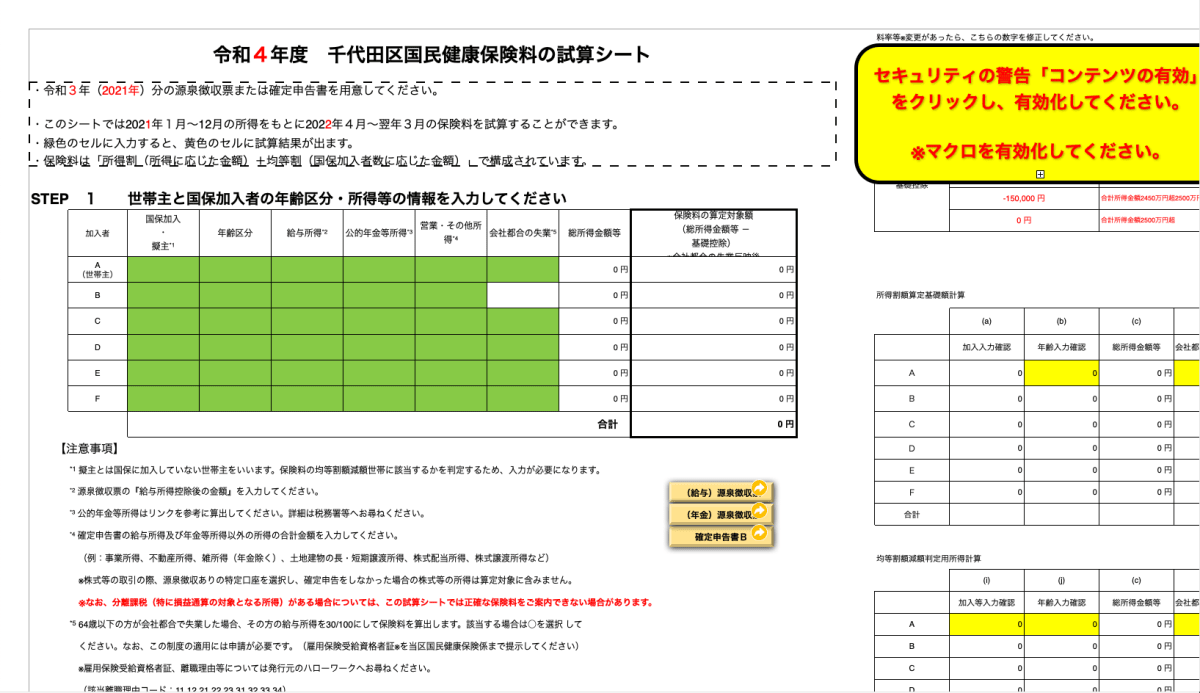市区町村によっては以下のような国民健康保険料の計算のためのExcelシートをHPで公開しており、自分も使ってみたのですが、「各項目の制約がわかりづらい」「どの項目を入力したらよいのかわかりづらい」と感じました。