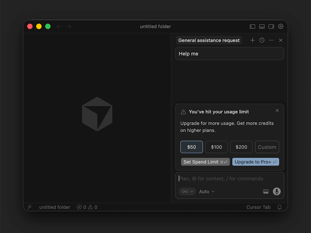 Cursor Pro プランでの「You've hit your usage limit」の通知