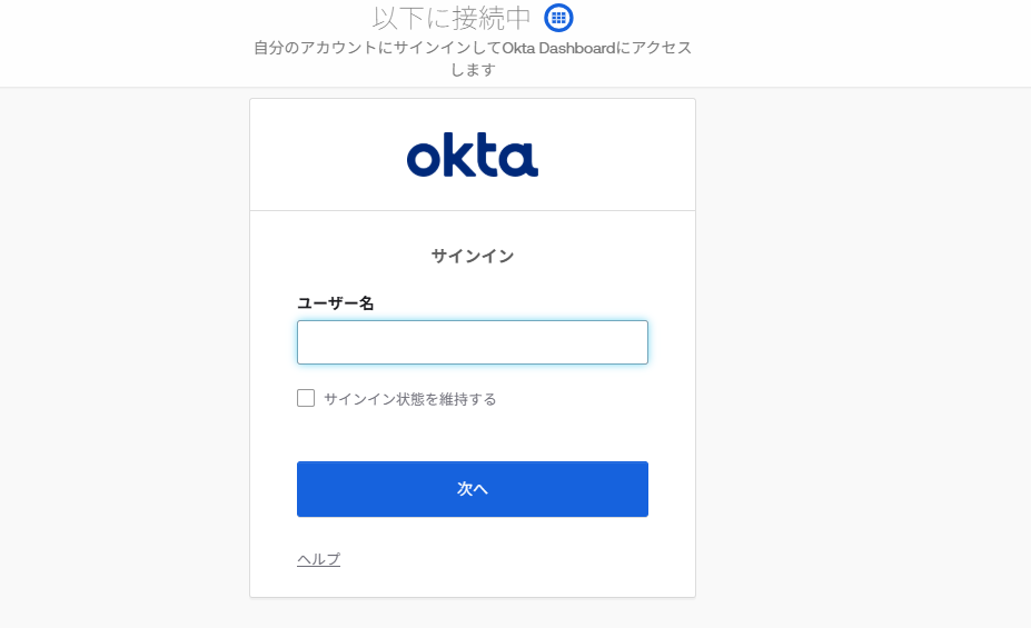 ちゃんと Okta でログインするボタンが表示されていることを確認できる。