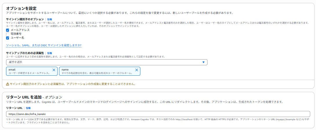 そのためここは Cognito で作成したユーザープールで設定したユーザーの属性と一致させる。