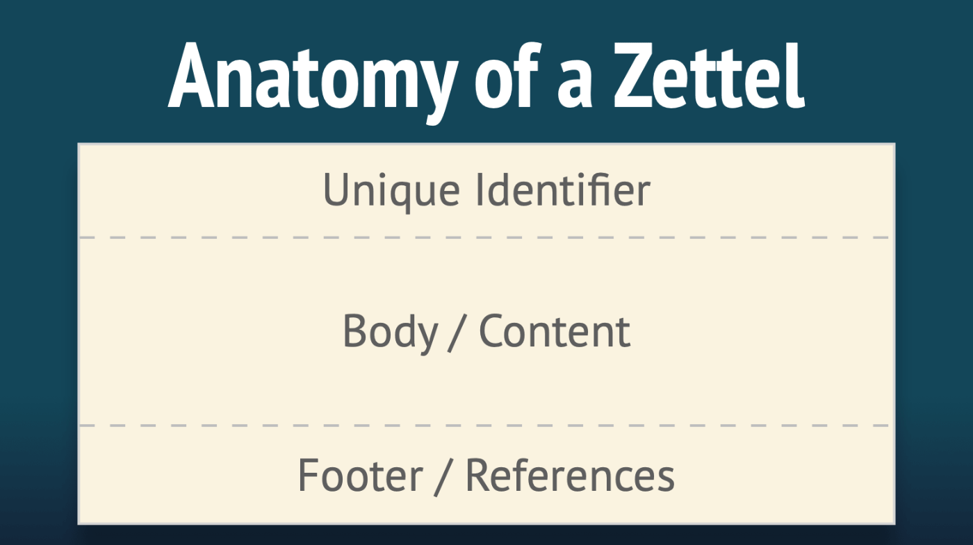Zettelkasten では、1枚の Zettel が持つべき最小構成(Anatomy)として、