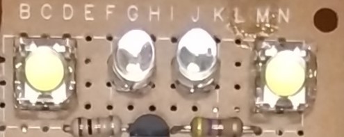 闇を照らす我らが白色LED。近くを照らすSMDタイプと遠くを照らす砲弾タイプをそれぞれ2個使いました。双方とも「高輝度」というのを使ったんですが正直光力不足です。懐中電灯レベルの明るさにはなるのでまあ人間には問題ないんですが、今回使ったTimer Camera Xではあまり遠くが見えません。ここ、改良が必要ですな。