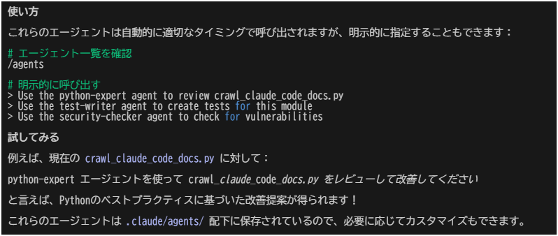 これを参照しながらコーディングに便利そうなサブエージェント作ってくれませんか?