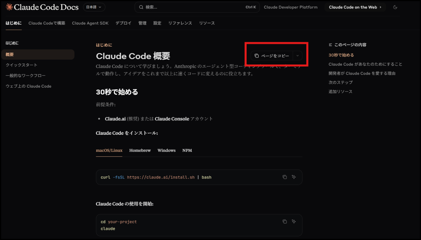 例えば、https://code.claude.com/docs/ja/overviewというページの場合、