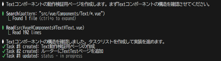 - 作業フローに応じたタスクリストをClaude Code側が自動作成(ユーザが手動作成はできない模様)