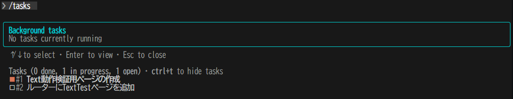 - /taskコマンドでタスクの確認が可能(進行中のタスクのみ?)