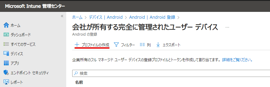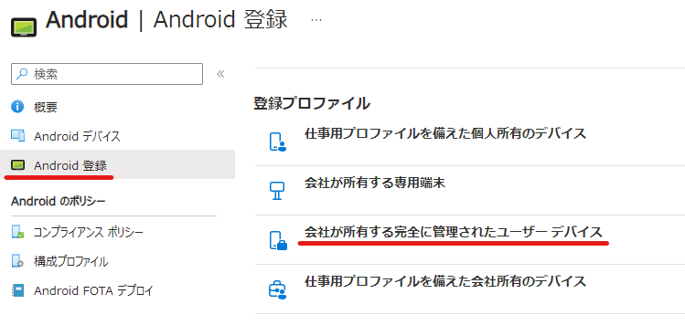 Intuneで登録する場合、Android Enterpriseでの登録が必要です。