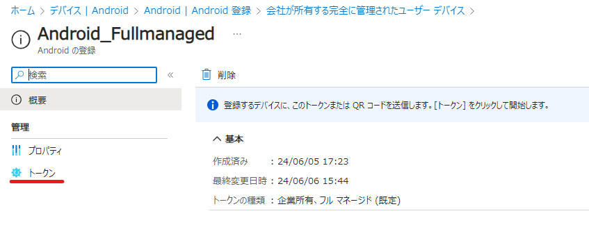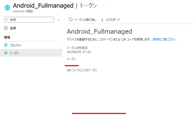 ここにトークンコードとQRコードが表示されるので、Intune登録時にはこれらを利用することになります。