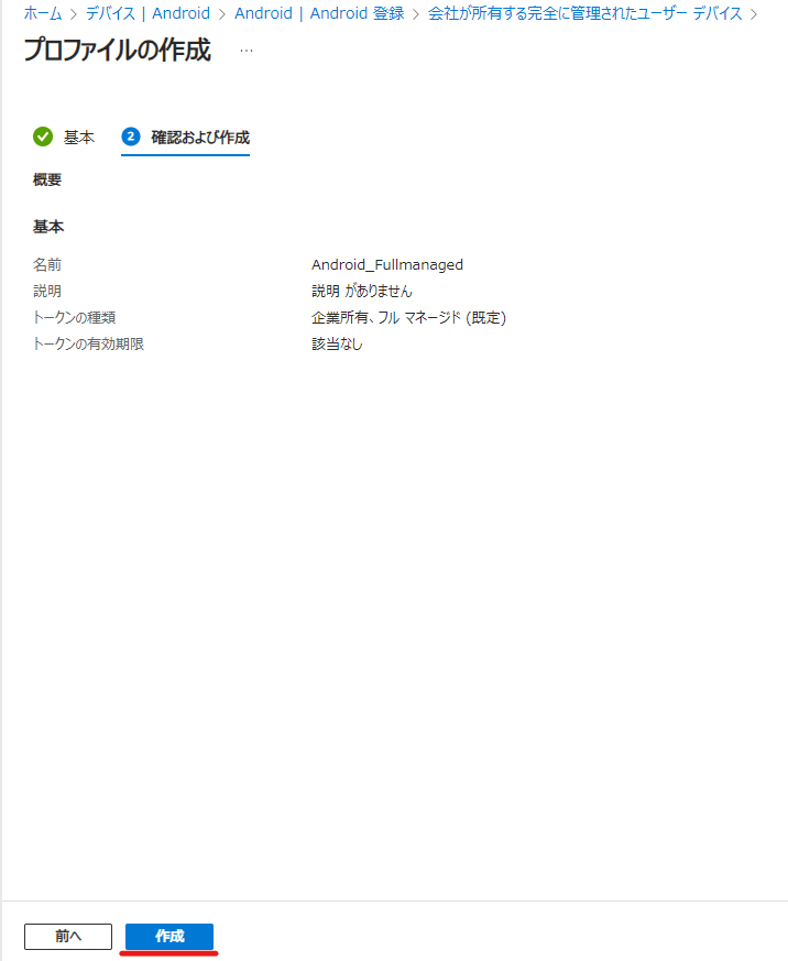 android登録 > 会社が所有する完全に管理されたユーザーデバイス を選択します。