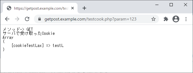 今回はSameSite属性がLaxであるものとStrictであるもの2種類のCookieをセットし、サーバ側に送られるか試してみました。