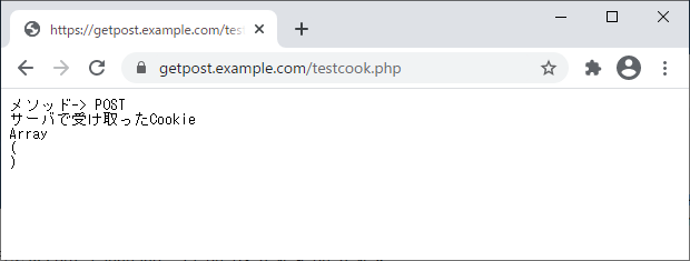 ヘッダの情報を見るために、サーバ側では次のようなPHPを動作させておきます。これはリクエストヘッダに含まれていたCookieを表示するだけのシンプルなものです。
