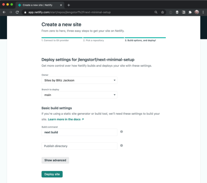 元の記事ではOption 1として Netlify CLIを使う方法が紹介されてますが、今回は Option 2の Netlify UI(Netlifyのダッシュボート上での操作)を使った方法でやっていきたいと思います。