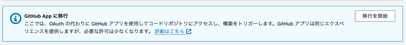 基本的には、特別なことはなく、AWSコンソールの指示にしたがって改めてUI上でGitHub連携を行うだけです。