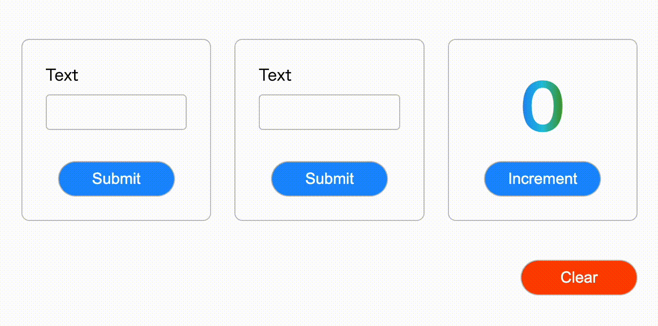 こんな感じで、ボタンを押したらそれぞれのフォームの値(React Hook Form) と カウント(Recoil) をクリアするものを実装してみました。
