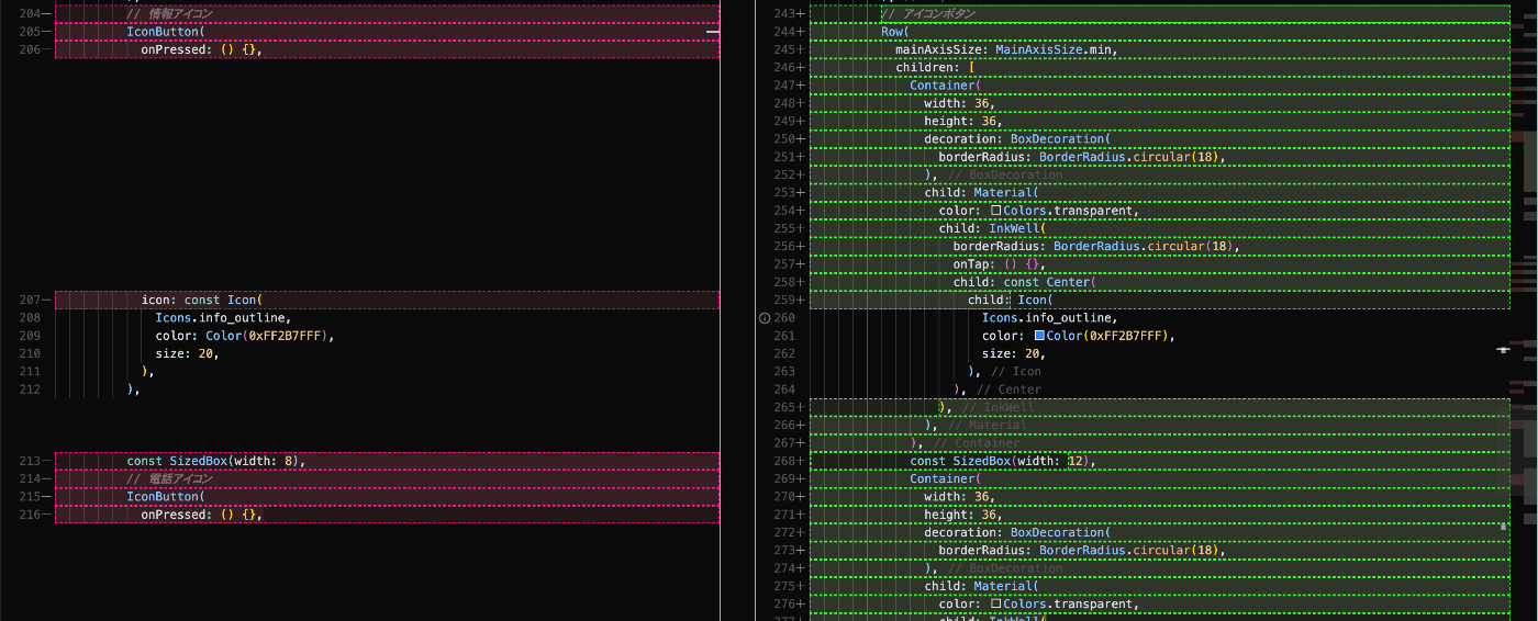 After デザインで再度コード生成を行った結果の Diff を以下に抜粋します。