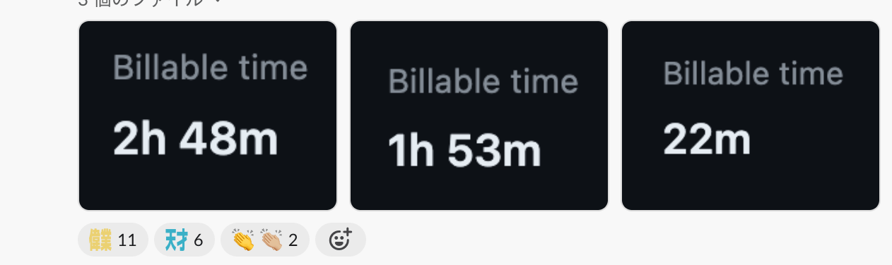 当時の喜びの投稿を見つけたので貼っておきます。Total durationではないですが当時のBillable timeの比較です。