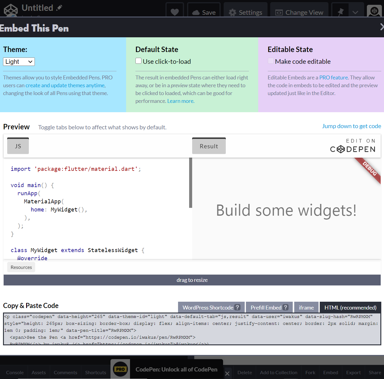 記事にFlutterのコードを埋め込む方法を探したところ、