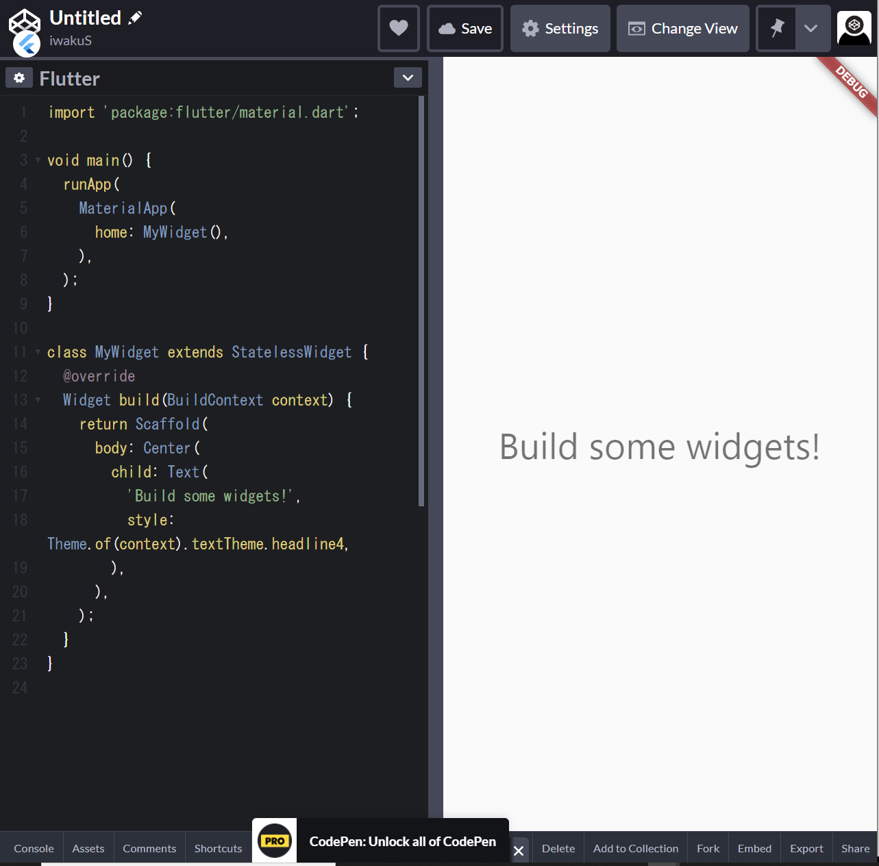 - 過去にDartPadで記載していたコード「Flutterでチンチロリン」を、そのままcodepenに貼り付けた時に、icon表示がおかしくなった