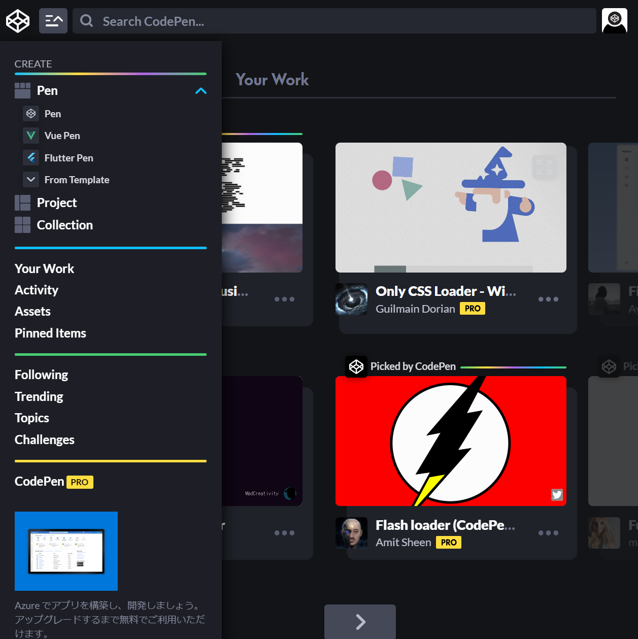 - 画面左メニュー内のCREATE欄からPen > Flutter Penを選択