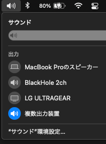 (事情がありモニターのサウンドポートを使っている) - BlackHole: 今回追加する仮想デバイス