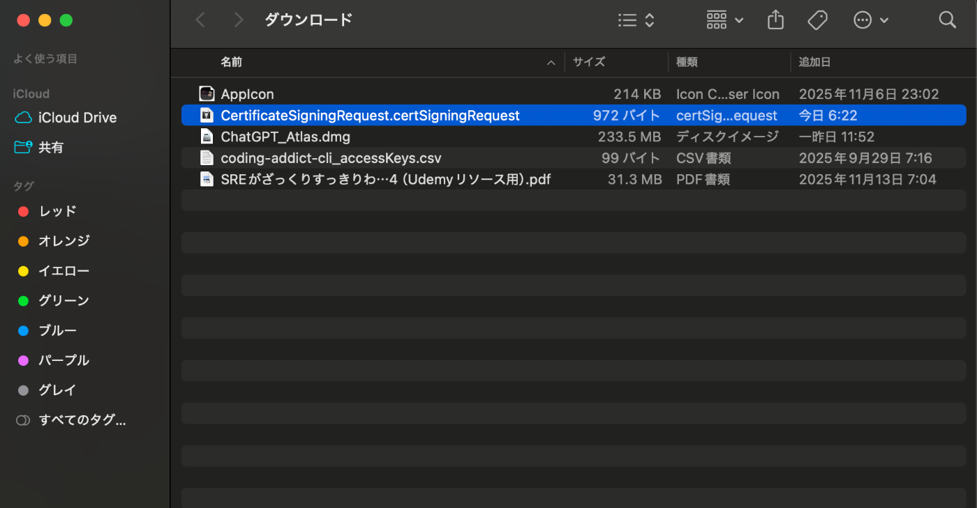 AppStoreへの申請をするには、開発用のPCに申請用の証明書をダウンロードする必要がある。以下の手順通りに証明書を入手してkeychainアプリに追加する。